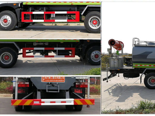 其它 | 1、罐體總?cè)萘?9.67立方米,罐體有效容積:9.21立方米,僅選用3950mm、4500mm及4700mm軸距底盤改裝。整車長(zhǎng)度(mm)/軸距(mm)/后懸(mm)/離去角(°)/罐體外形尺寸(長(zhǎng)×長(zhǎng)軸×短軸)(mm)的對(duì)應(yīng)關(guān)系為:7770/3950/2560/11/4000×2150×1570,7770/3950/2560/11/4300×2150×1480,8580/4500/2820/10/4800×2150×1330,8780/4700/2820/10/5000×2150×1280。選裝前電子霧炮前伸(mm):500。整車長(zhǎng)度(mm)/軸距(mm)/后懸(mm)/離去角(°)/罐體外形尺寸(長(zhǎng)×長(zhǎng)軸×短軸)(mm)的對(duì)應(yīng)關(guān)系為:8270/3950/2560/11/4000×2150×1570,8270/3950/2560/11/4300×2150×1480,9080/4500/2820/10/4800×2150×1330,9280/4700/2820/10/5000×2150×1280。 2、側(cè)防護(hù)及后下部防護(hù)裝置均采用Q235B材質(zhì),均采用螺栓連接,后下部防護(hù)尺寸:150×50(mm),離地面高度480mm。3、ABS系統(tǒng)生產(chǎn)廠家,型號(hào):焦作博瑞克控制技術(shù)有限公司,J ABS。4、專用裝置:罐體,主要用于路面灑水及園林綠化。5、隨底盤選裝底盤布局。6、選裝電子霧炮,選裝立式水冷霧炮機(jī)組、自流口和后對(duì)沖,選裝大平臺(tái)的高位花灑、臥式水冷霧炮機(jī)組,選裝霧炮樣式,選裝主管道樣式。7、選裝涂裝,選裝T6涂裝,選裝不帶噴霧機(jī)組大平臺(tái),選裝前沖萬(wàn)向鴨嘴樣式,選裝腰沖位置,選裝前沖,選裝箭頭指示燈,選裝氣動(dòng)閥,選裝上走臺(tái)樣式,選裝不帶炮管箱,選裝塑料輪罩,選裝尾部排沖。 | ||
