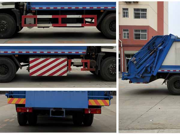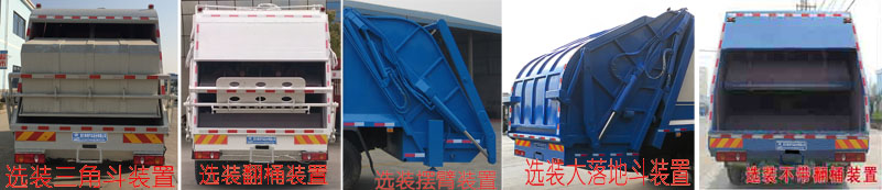 其它 | 1、該車僅選用3950mm,4500mm和4700mm軸距,該車有六種可選翻轉(zhuǎn)樣式,A:封閉式掛桶裝置(主照片),B:三角斗裝置,C:翻桶裝置,D:擺臂裝置,E:大落地斗裝置,F:不帶翻桶裝置。當(dāng)選擇ABCDE時(shí),整車后懸為2670mm,離去角為15°,該車整車長(zhǎng)(mm)/軸距(mm)的對(duì)應(yīng)關(guān)系為:8800/4700,8600/4500,8050/3950;當(dāng)選擇F時(shí),整車后懸為2420mm,離去角為16°,該車整車長(zhǎng)(mm)/軸距(mm)的對(duì)應(yīng)關(guān)系為:8550/4700,8350/4500,7800/3950;額定載質(zhì)量(kg)/駕駛室準(zhǔn)乘人數(shù)(人)的對(duì)應(yīng)關(guān)系為:7345/3,7410/2。2、防護(hù)材料:Q235碳鋼,連接方式:左右側(cè)面防護(hù)采用焊接連接在箱體底板上,后部防護(hù)由專用裝置代替豁免,離地高度為450mm. 3、ABS型號(hào)為ABS-E 4S/4M和3631010-C2000,生產(chǎn)廠家為威伯科汽車控制系統(tǒng)(中國(guó))有限公司和東科克諾爾商用車制動(dòng)系統(tǒng)(十堰)有限公司.4、該車安裝帶衛(wèi)星定位功能的行駛記錄儀.5、該車主要功能:能將垃圾自行壓實(shí)裝入,轉(zhuǎn)運(yùn)和卸料;主要專用裝置:箱體裝置. | ||